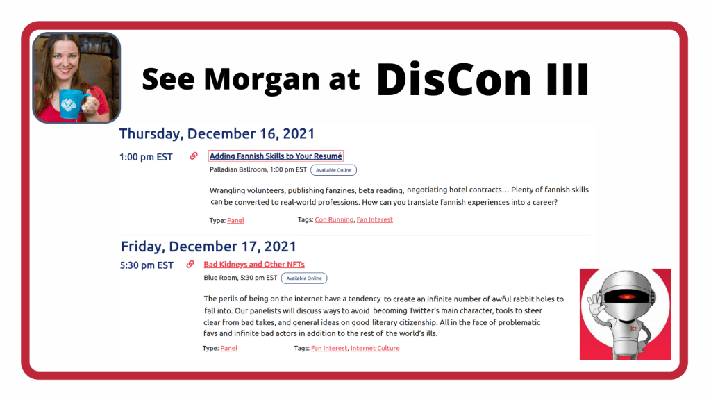 Coming up December 16-18th, you can find me at WorldCon 2021 (DisCon III) in Washington D.C. The convention runs from the 15th-19th.