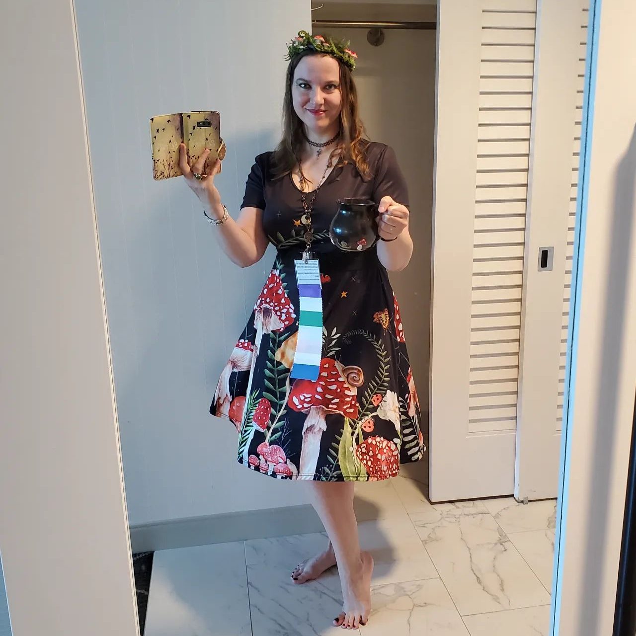Wearing my new mushroom tiara/crown, a mushroom dress, and a mug decorated in toadstools and a small snail, I decided to rock the “Mushroom Queen” cottagecore aesthetic on Saturday.